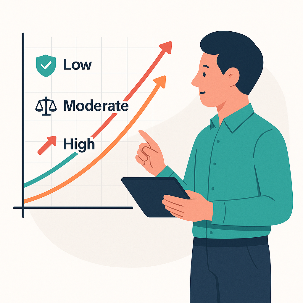 באמצעות שאלון סיכון קצר אוכל לאפיין את רמת הסיכון שלך ולבדוק את התאמת מסלולי ההשקעה שלך לרמת הסיכון.